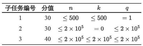 对于全部数据,保证有 $1\le k \le n \le 2 \times 10^5$ ,$1 \le q \le 2 \times 10^5$ ,$1 \le x_i,y_i \le n$ ,$1 \le u_i,v_i \le n$ 。